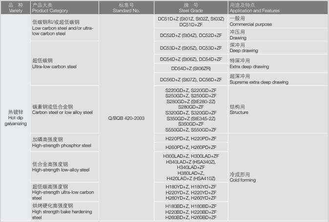 熱鍍鋅的產(chǎn)品分類及用途特點