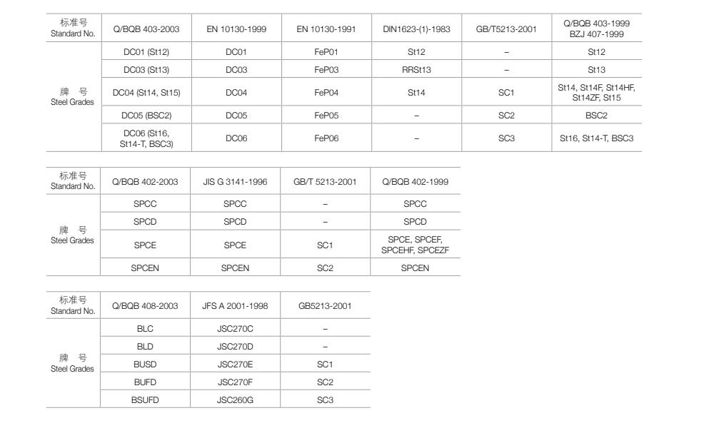 沖壓級:具有比一般用級較大的延展性,適用于制造沖壓成型及較復(fù)雜變形的零部件 DC03, SPCD, BLD
