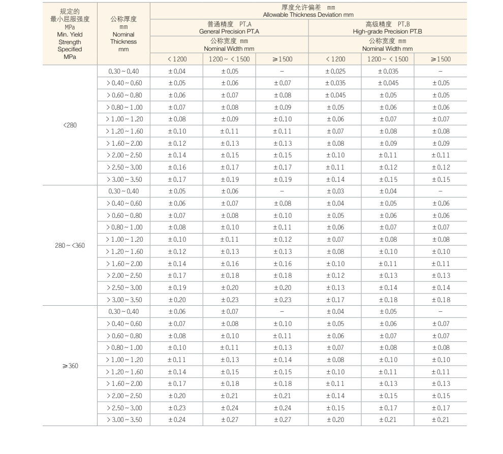 冷軋鋼板、鋼帶厚度允許偏差