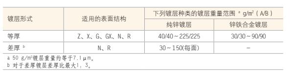 注:鋼板及鋼帶的公稱厚度為基板厚度和鍍層厚度之和。
