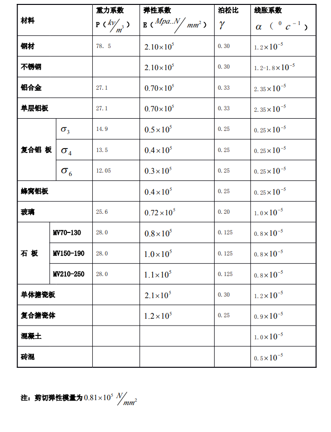 常用材料物理性能