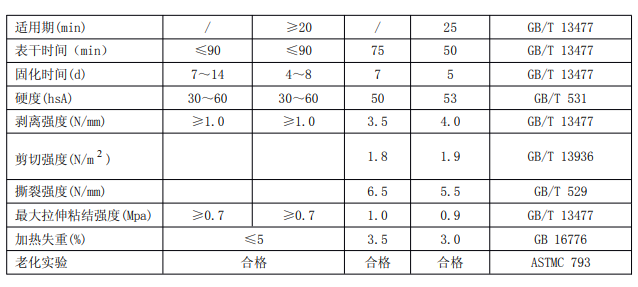 以上三種密封膠僅用于中空玻璃第二道密封膠,它們與硅酮結(jié)構(gòu)(建筑)密封膠性相容,可配套使用。即凡是使用硅酮密封膠作中空玻璃結(jié)構(gòu)性玻璃裝配或防風(fēng)雨填縫的中空玻璃必須使用中空玻璃二道密封膠作第二道密封膠,使用其他密封膠必須作相容性試驗(yàn)。